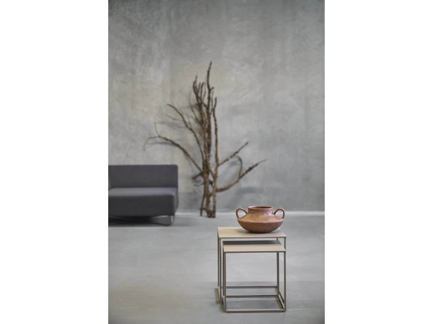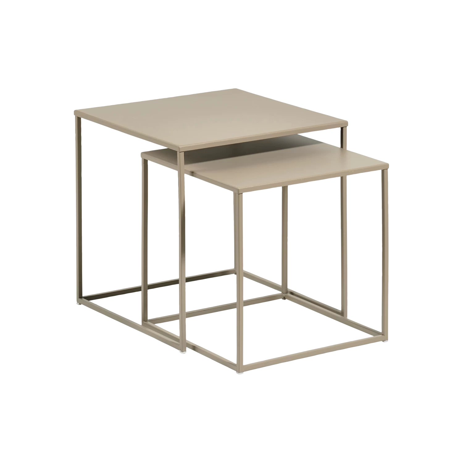 Kleine sandfarbene Tische, die überall in der Wohnung sehr dekorativ sind, z. B. im Wohnzimmer als Couchtisch-Set, im Flur oder im Schlafzimmer. Sie nehmen nicht viel Platz in Anspruch und lassen sich leicht umstellen.
