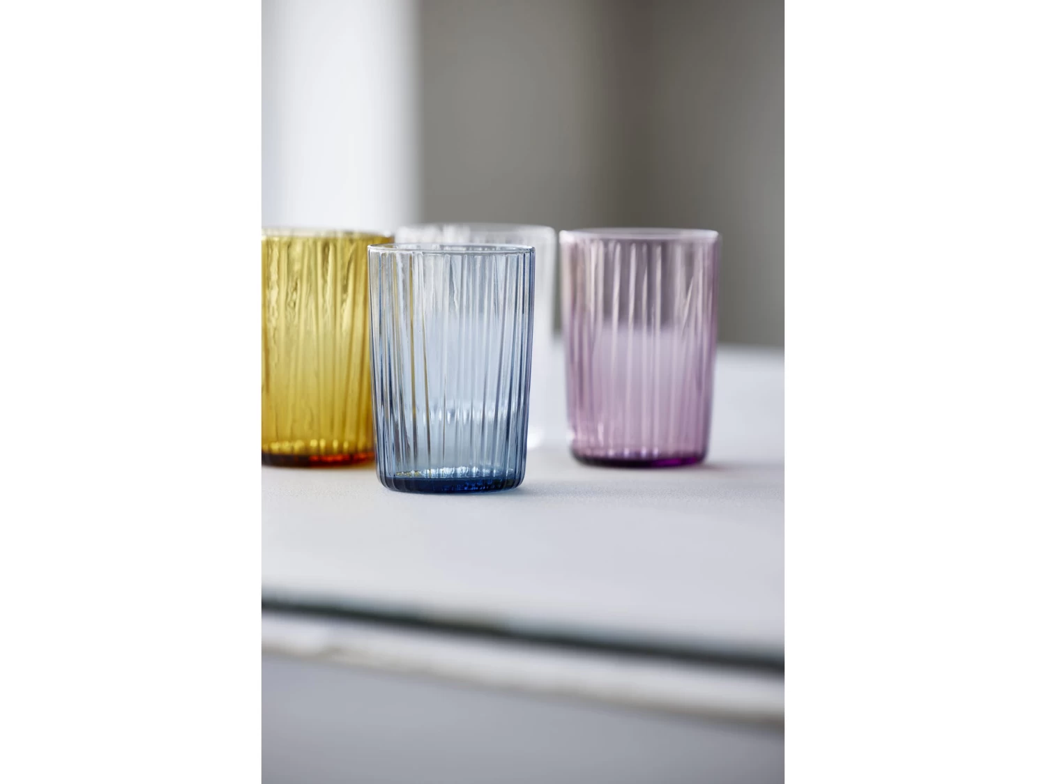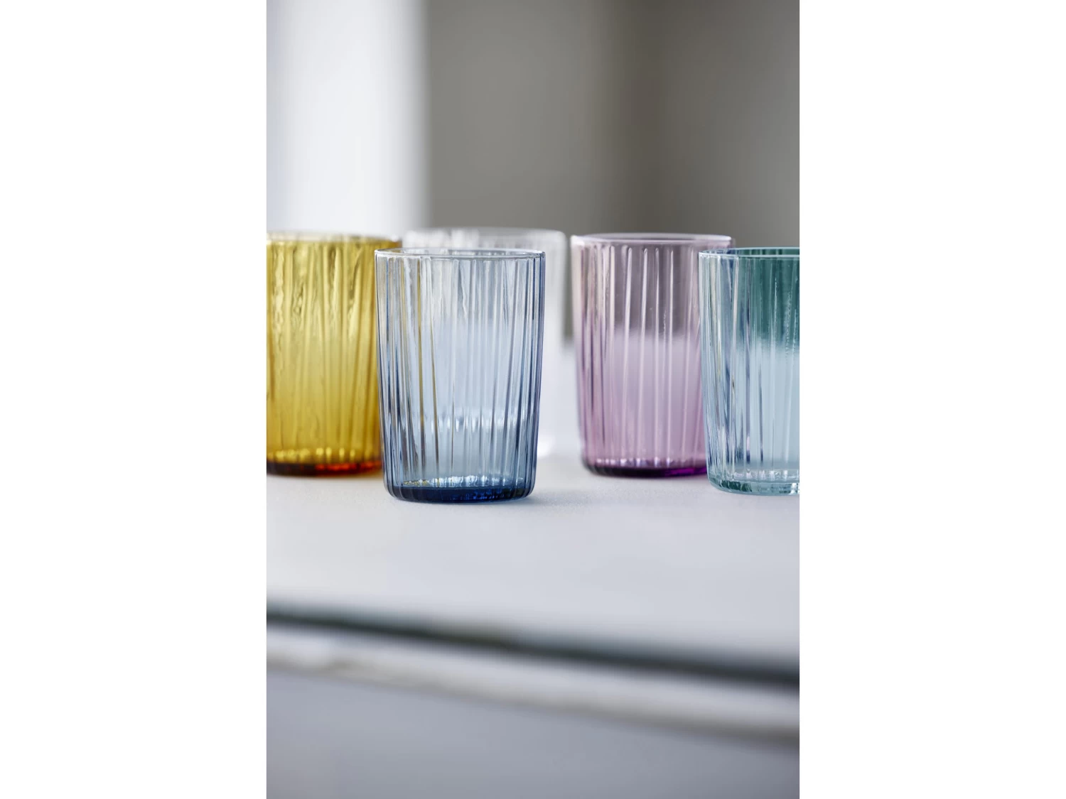 Die tollen Wassergläser aus durchgefärbtem Glas haben den gleichen hübschen, geriffelten Look wie die Wasserflaschen der Kusintha-Serie. Die Gläser sind in Grün, Bernstein, Pink, Blau und in einer ganz klaren Version erhältlich. Wenn Sie etwas aus der Kusintha-Kollektion kaufen, unterstützen Sie gleichzeitig bedürftige Kinder in den ärmsten Gebieten der Welt.