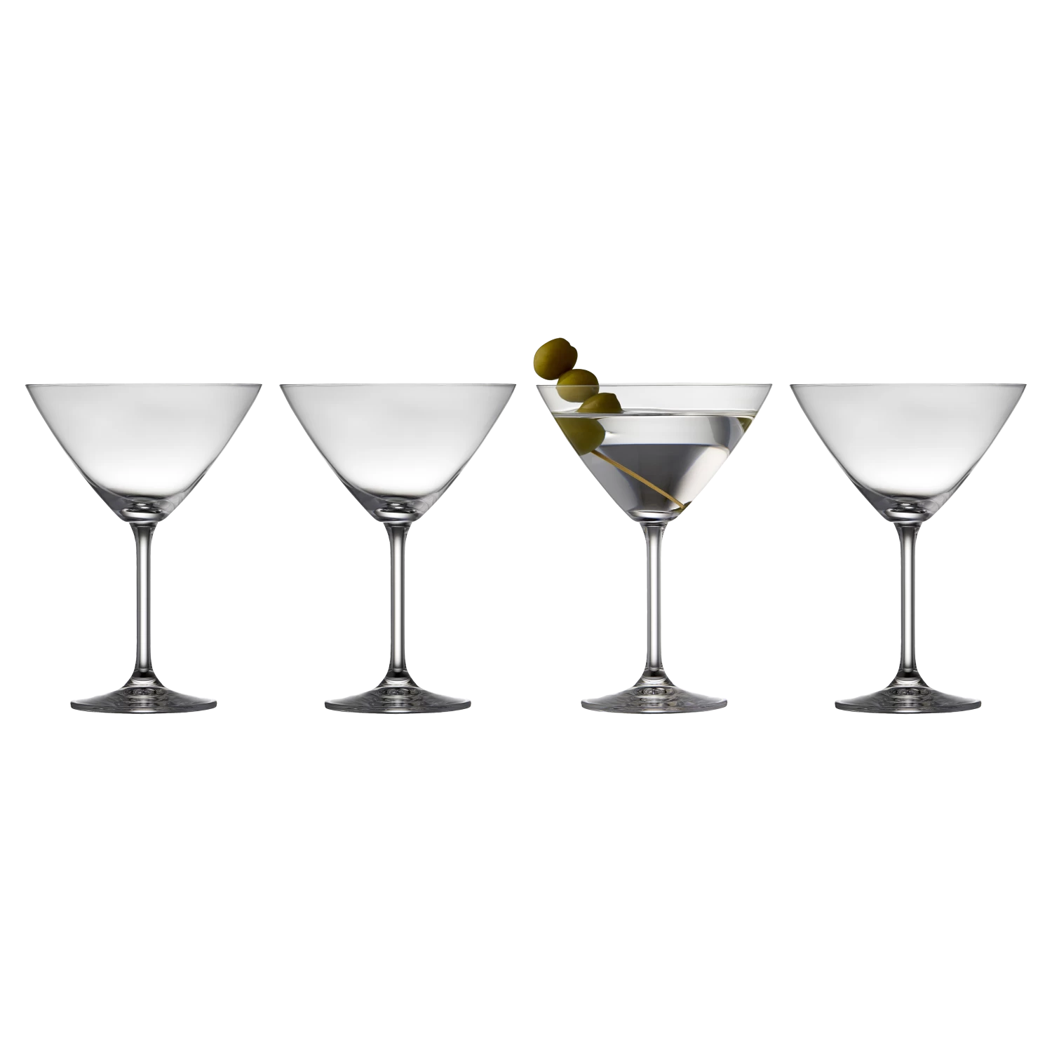 Martini-Glas Juvel in der bekannten klassischen und stilvollen Fasson. Servieren Sie den Lieblingscocktail von James Bond in einem schönen, klaren Glas, das natürlich auch einen Cosmopolitan und viele andere Cocktails auf ein ganz neues Niveau hebt. 28 cl. 4 Stck. 17,5 cm.