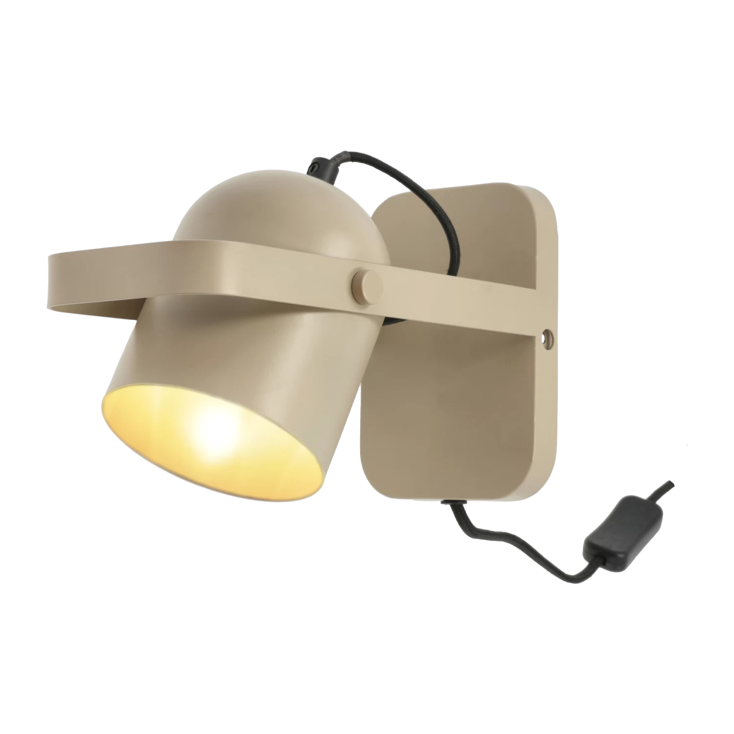 Wandleuchte aus sandfarbenem Eisen mit einem Schirm, der gekippt und in die gewünschte Position gedreht werden kann. Die perfekte Arbeitslampe in der Küche, oder als Nachttischlampe im Schlafzimmer, wo die Schwenkfunktion beim Lesen im Bett nützlich ist. Die Wandleuchte hat ein industrielles Design, das hervorragend zu einem minimalistischen Einrichtungsstil passt.