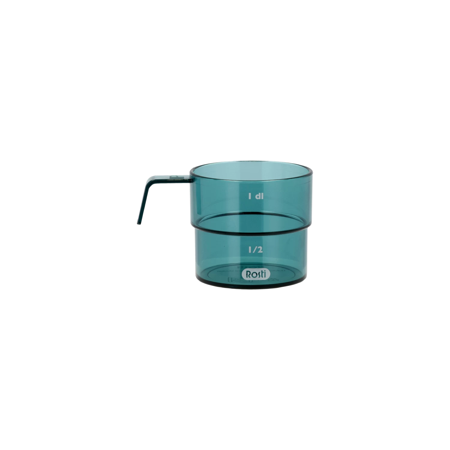 Der Mensura Deziliter-Messbecher hat ein markantes Design mit einer deutlichen Markierung in der Mitte, die einen halben Deziliter anzeigt. Die gleiche Markierung im Design macht es leicht, mehrere Messbecher zu stapeln. Der Griff bietet einen guten und sicheren Halt.