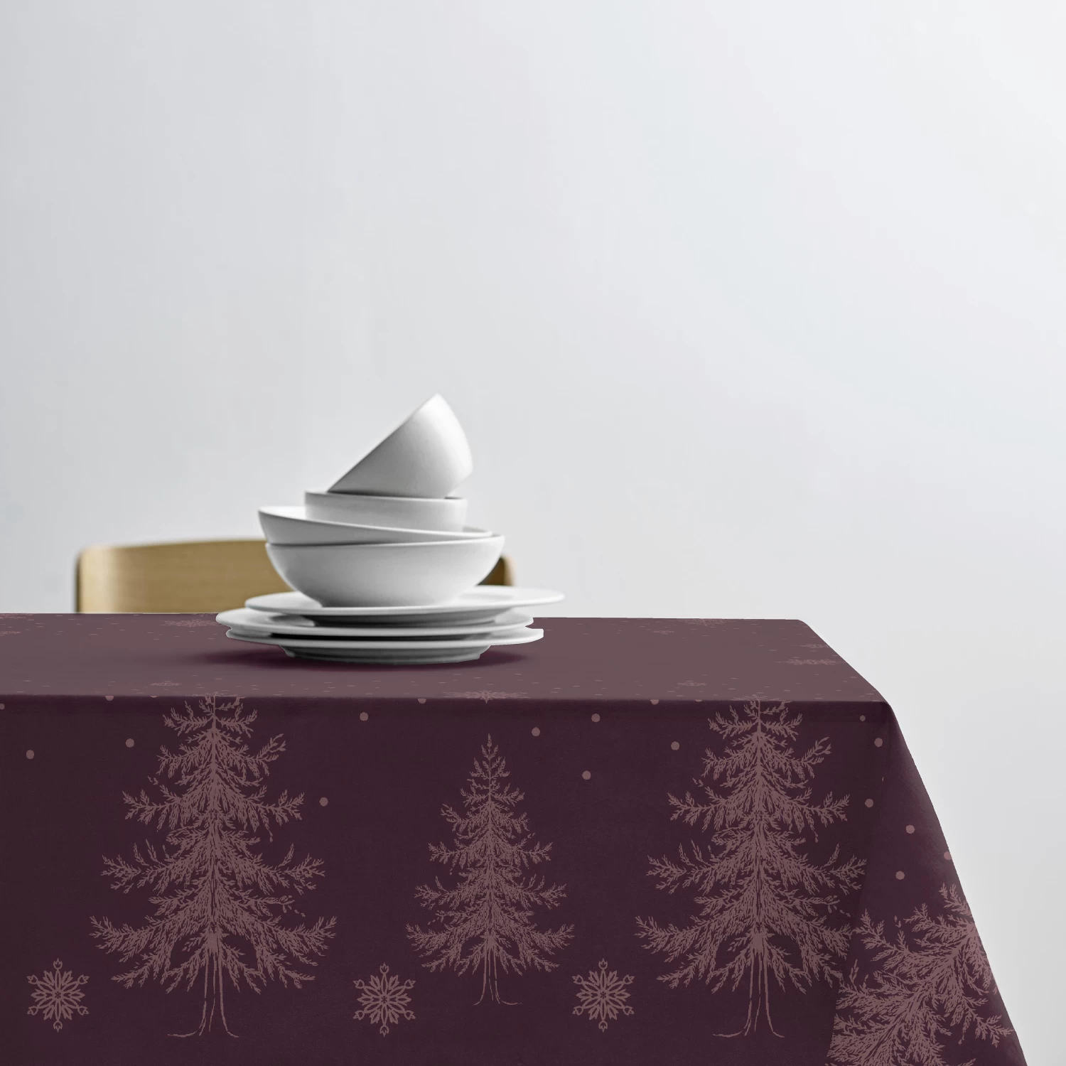 Ein wirklich schönes und klassisches Weihnachts-/Winterthema, das sowohl als Dekoration zu Weihnachten als auch in den übrigen Wintermonaten toll verwendet werden kann. Die Bäume des Designs bilden eine hübsche Borte, und das Muster wird auf den einzelnen Decken und Servietten weitergeführt, was für Einheitlichkeit und Exklusivität im Design sorgt.