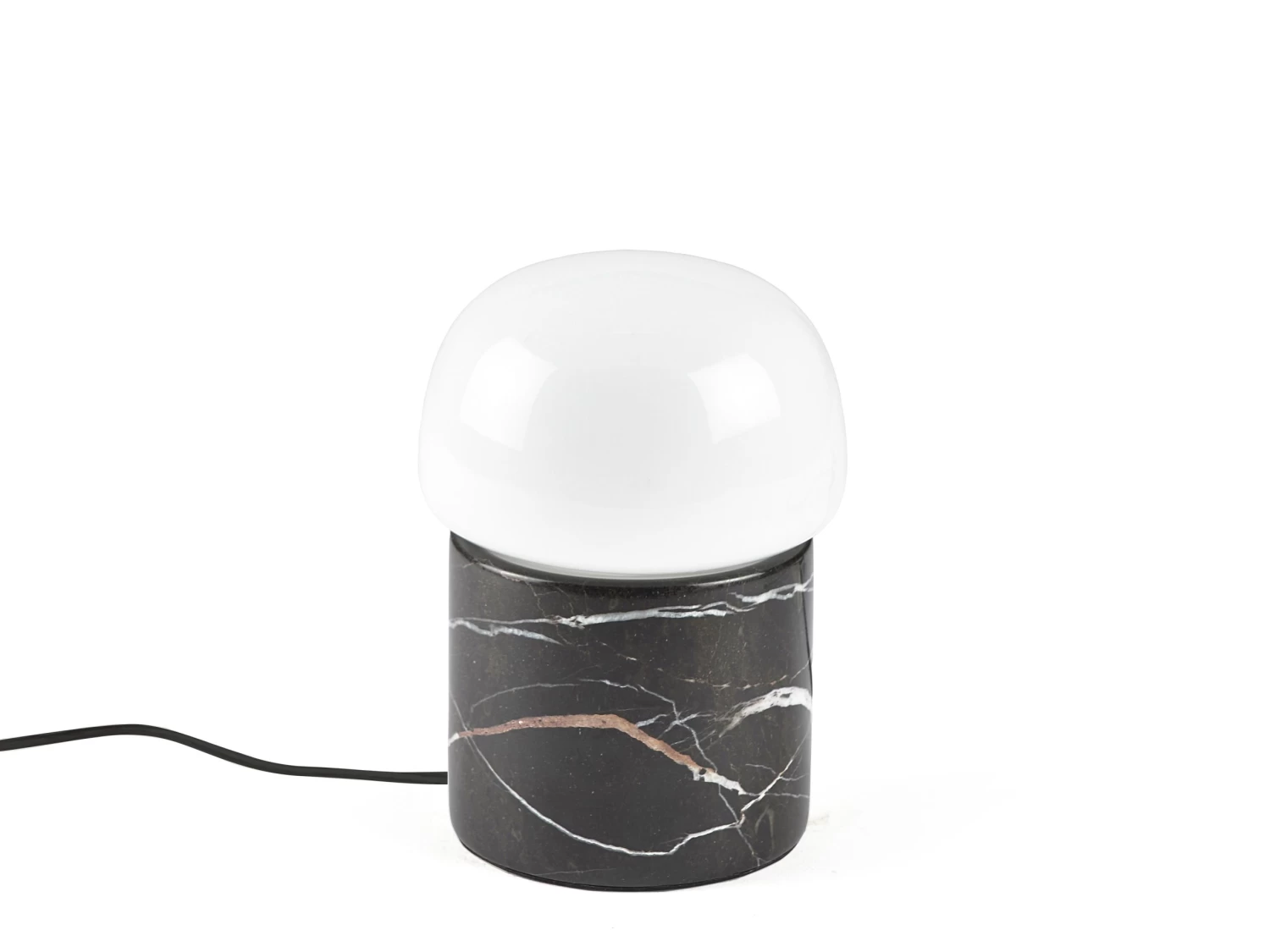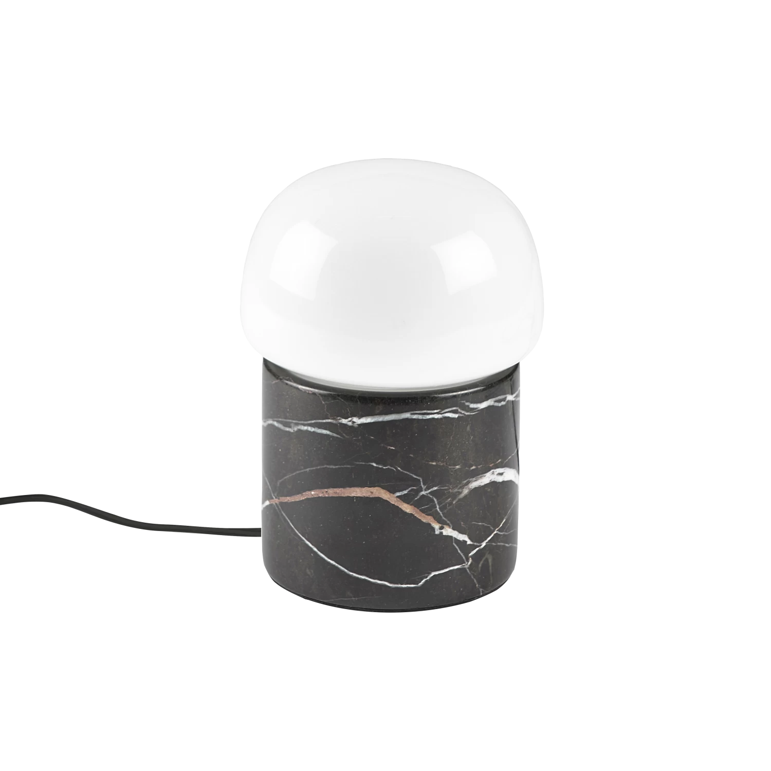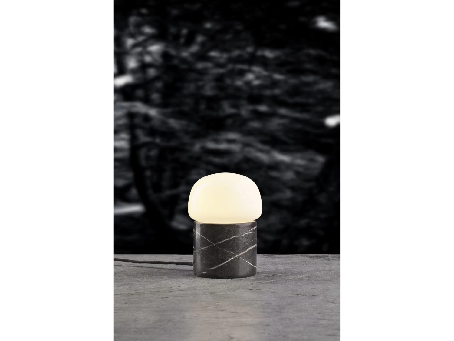 Kleine und stimmungsvolle Tischlampe aus Marmor und Glas, die für Gemütlichkeit im Wohnzimmer, Schlafzimmer oder Flur sorgt. Inklusive 1,5 m langem Polyesterkabel. E14 Fassung. D 12,5 x H 24,5 cm.