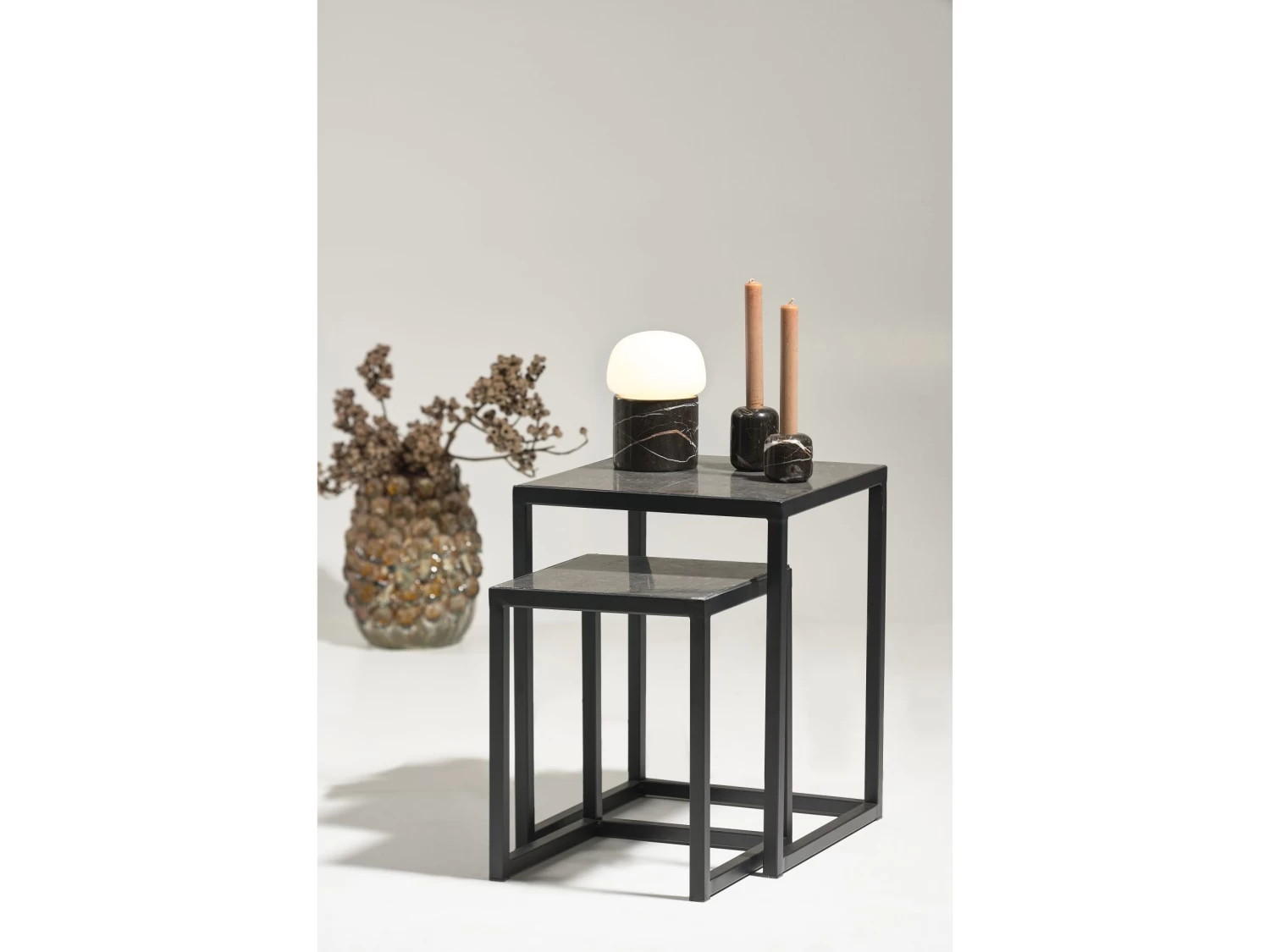Die Lampe ist eine tolle Dekoration zusammen mit Kerzenleuchtern aus den Materialien der Natur.