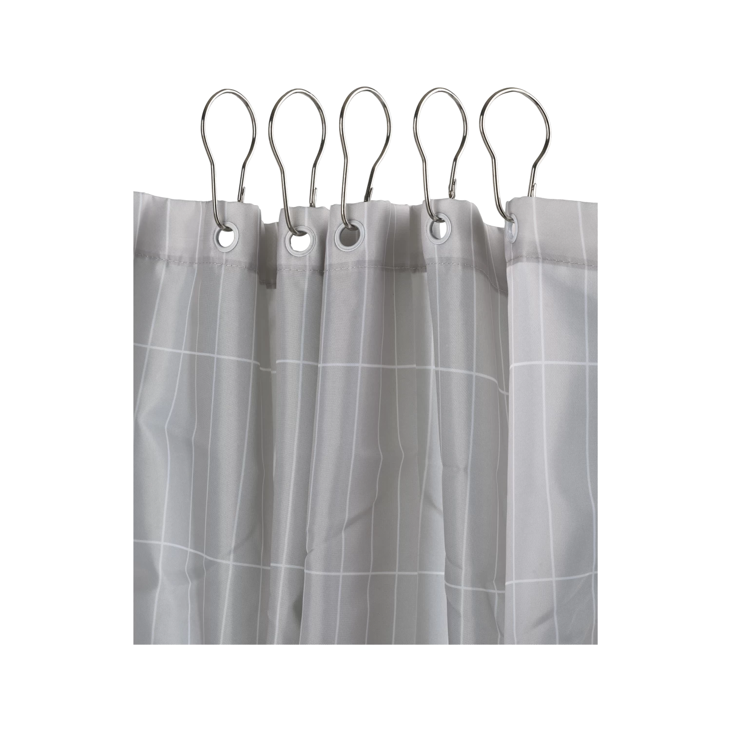 Haken für Badevorhang. Verpackung mit 12 Silberfarbige Metallhaken.