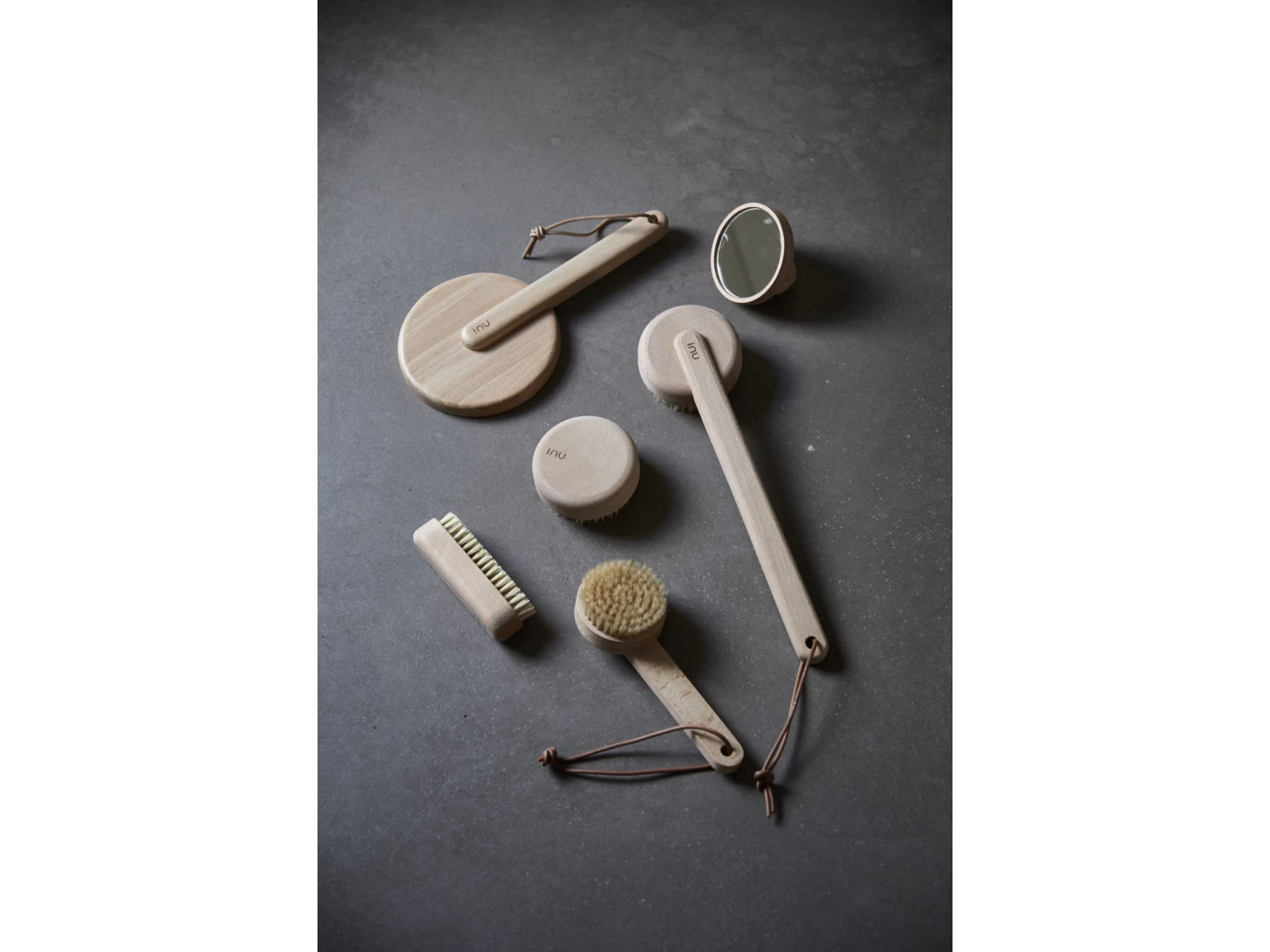 Handspiegel aus Zone Denmarks Spa-serie Inu, der mit seinem schlichten organischen Design und dem dekorativen hellen Buchenholz modernen Luxus versprüht. Der Spiegel ist eine köstliche Neuinterpretation des klassischen Handspiegels. Das Spiegelglas ist in einem Rahmen montiert, sodass es mit der Glasseite nach unten dekoriert werden kann, ohne zerkratzt zu werden. Länge 27 cm, Breite 14 cm.
